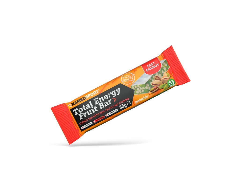 TOTAL ENERGY FRUIT BAR je chutná energetická tyčinka se 30 g sacharidů, rýžovými burizony, medem a ovocem. Obsahuje vitamíny B1, B6 a vitamín C. vyznačuje se vyváženou matricí sacharidů, které zajišťují rychlý a dlouhodobý přísun energie. Ihned dostupné sacharidy umožňují okamžitý výkon, zatímco pomalu se uvolňující sacharidy slouží jako dlouhodobý zdroj energie. Tyto tyčinky jsou vynikající pro udržení energie, a lze je snadno vzít s sebou na závod nebo na vytrvalostní trénink. Jsou opatřeny unikátním nelepivým obalem z rýžového papíru, díky němuž se nelepí na prsty ani na vybavení.